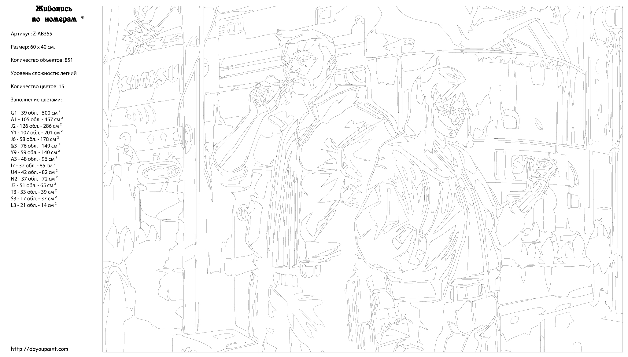 Количество красок от 18 до 24. Картина раскрашивается без смешивания красок. Высококачественные акриловые краски собственного производства сделают вашу картину яркой и уникальной. Все необходимые материалы есть в комплекте: натуральный хлопковый холст, натянутый на деревянный подрамник, баночки с акриловыми красками на водной основе, 2 кисти из качественного нейлона, схема раскрашивания, инструкция. Просто закрашивайте участки красками с соответствующим номером.