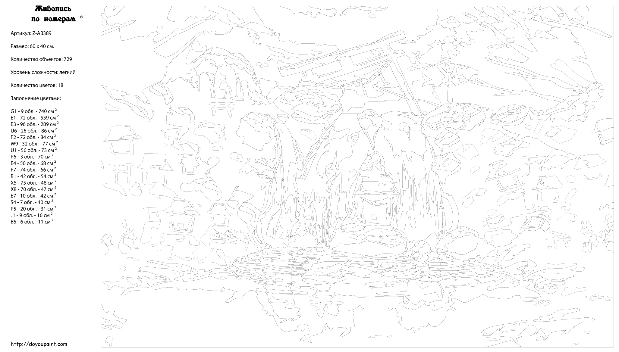 Количество красок от 18 до 24. Картина раскрашивается без смешивания красок. Высококачественные акриловые краски собственного производства сделают вашу картину яркой и уникальной. Все необходимые материалы есть в комплекте: натуральный хлопковый холст, натянутый на деревянный подрамник, баночки с акриловыми красками на водной основе, 2 кисти из качественного нейлона, схема раскрашивания, инструкция. Просто закрашивайте участки красками с соответствующим номером.