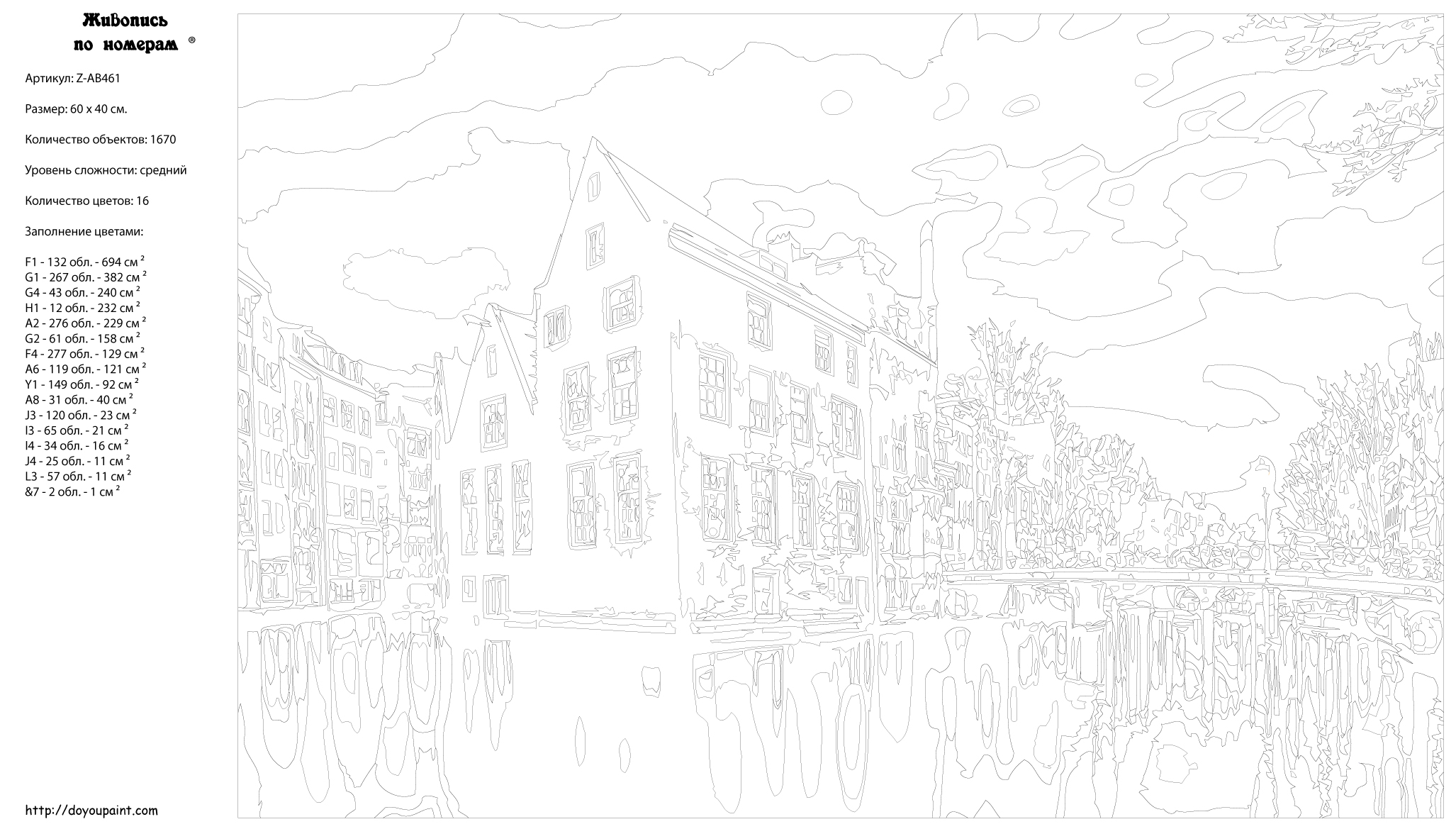 Количество красок от 18 до 24. Картина раскрашивается без смешивания красок. Высококачественные акриловые краски собственного производства сделают вашу картину яркой и уникальной. Все необходимые материалы есть в комплекте: натуральный хлопковый холст, натянутый на деревянный подрамник, баночки с акриловыми красками на водной основе, 2 кисти из качественного нейлона, схема раскрашивания, инструкция. Просто закрашивайте участки красками с соответствующим номером.