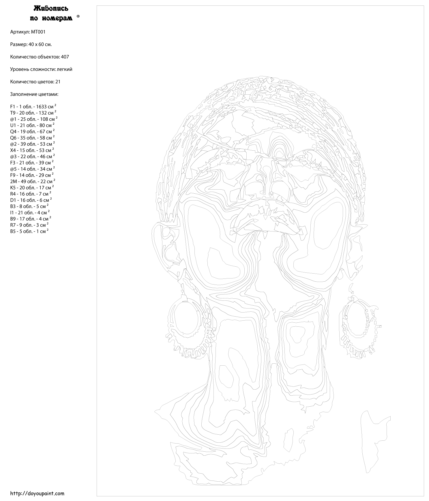 Количество красок от 18 до 24. Картина раскрашивается без смешивания красок. Высококачественные акриловые краски собственного производства сделают вашу картину яркой и уникальной. Все необходимые материалы есть в комплекте: натуральный хлопковый холст, натянутый на деревянный подрамник, баночки с акриловыми красками на водной основе, 2 кисти из качественного нейлона, схема раскрашивания, инструкция. Просто закрашивайте участки красками с соответствующим номером.
