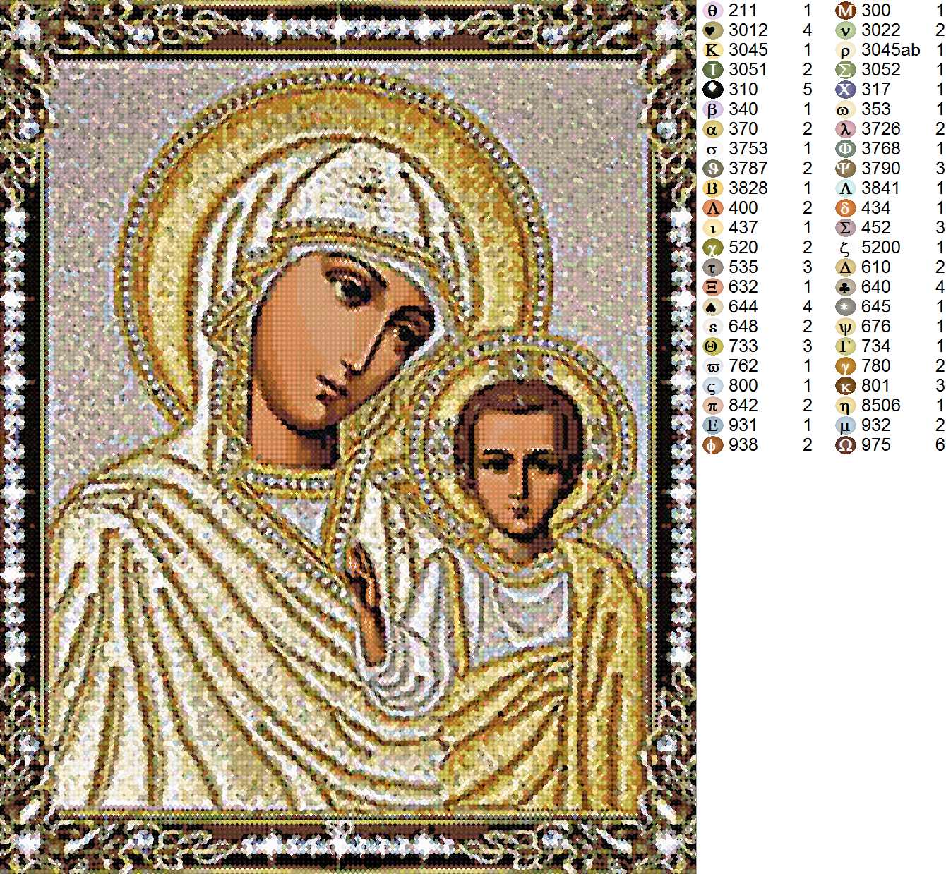Количество цветов мозаики от 32 до 48 в зависимости от сюжета. Схема распечатана на специальной пластиковой бумаге и нанесена на жесткую основу из пенокартона толщиной 3 мм, вся поверхностью которого покрыта клеевой основой. Таким образом после выкладки у вас получится готовая картина, которую можно будет вставить в обычную фоторамку соответствующего размера и повесить на стену.Вам необходимо просто постепенно снимать защитный слой и наносить камни с помощью удобного инструмента.Все необходимые материалы есть в наборе: основа из пенокартона со схемой картины, разноцветные стразы 2,8 мм, инструмент для выкладки.
