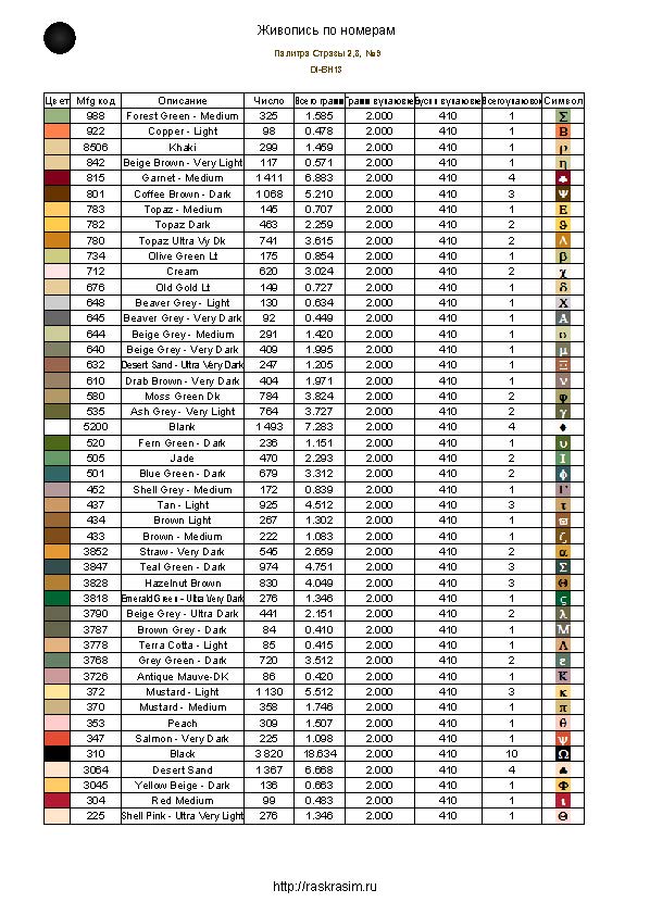 Количество цветов мозаики от 32 до 48 в зависимости от сюжета. Схема распечатана на специальной пластиковой бумаге и нанесена на жесткую основу из пенокартона толщиной 3 мм, вся поверхностью которого покрыта клеевой основой. Таким образом после выкладки у вас получится готовая картина, которую можно будет вставить в обычную фоторамку соответствующего размера и повесить на стену.Вам необходимо просто постепенно снимать защитный слой и наносить камни с помощью удобного инструмента.Все необходимые материалы есть в наборе: основа из пенокартона со схемой картины, разноцветные стразы 2,8 мм, инструмент для выкладки.